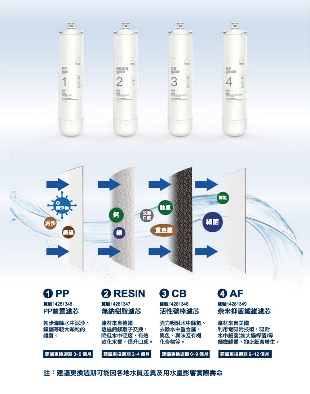 賀眾牌 UR-3302EBK-1/UR-3322ELB-1專用一年份濾芯MF-3302(UF-571*2+UF-576*2)