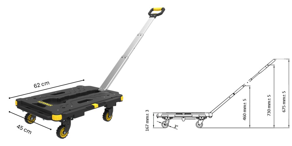 【STANLEY 折疊置物籃 25kg FT505】、 【STANLEY 可併接折疊貼地板車 PC531】可另外加購