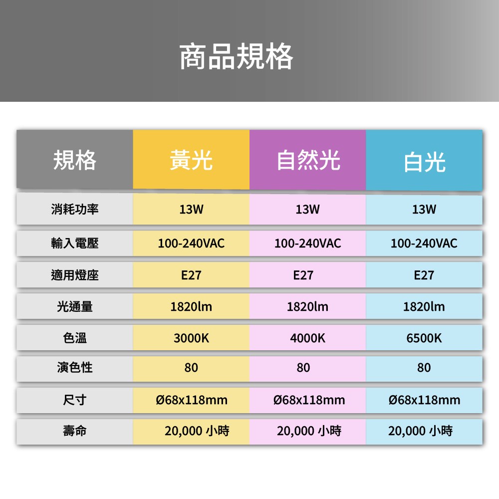 特力屋 金采 13W LED球泡燈 自然光 4入 LED燈泡