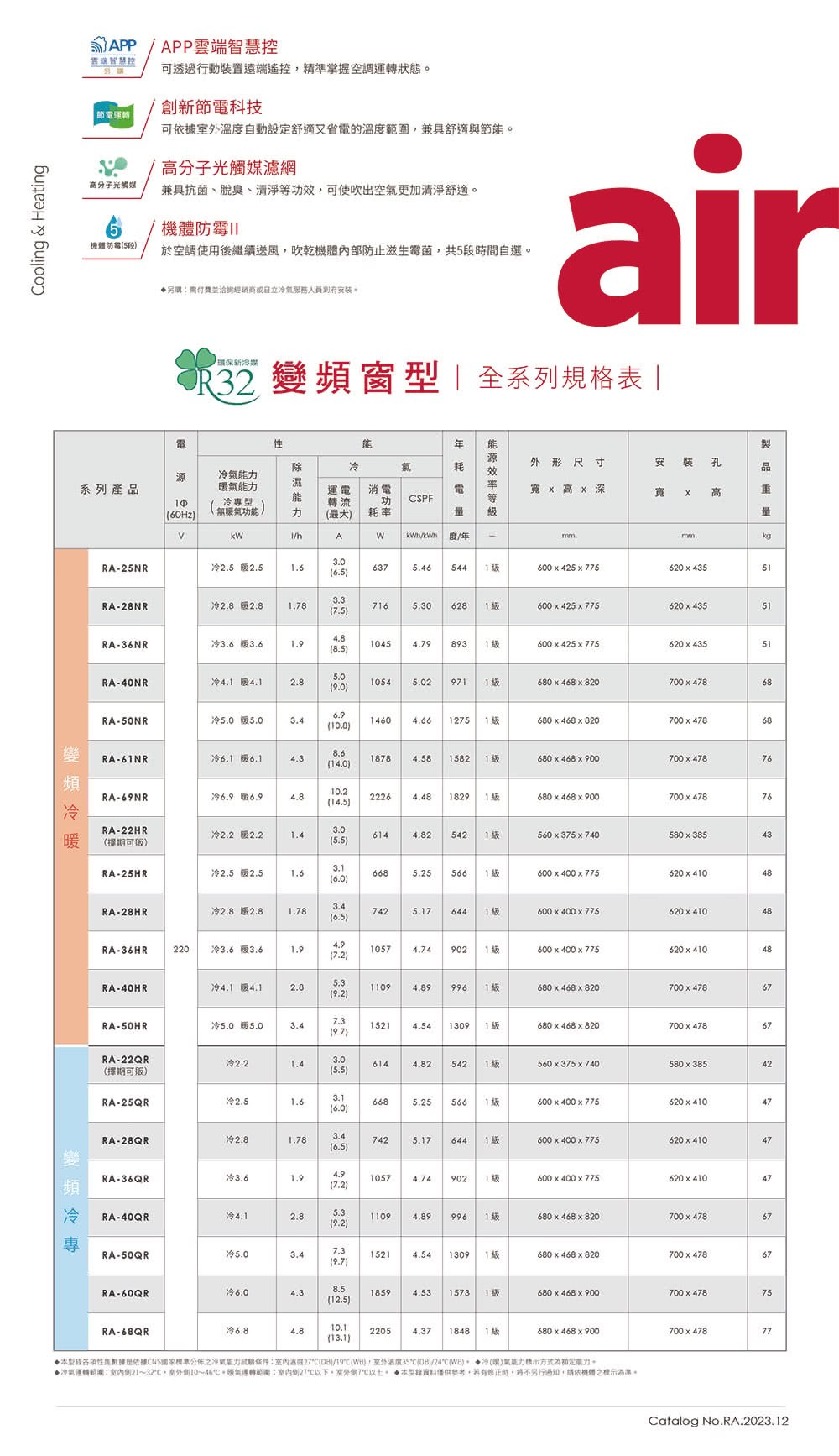 點我下載HITACHI 日立 R32 變頻冷專 左吹式窗型冷氣 RA-25QR