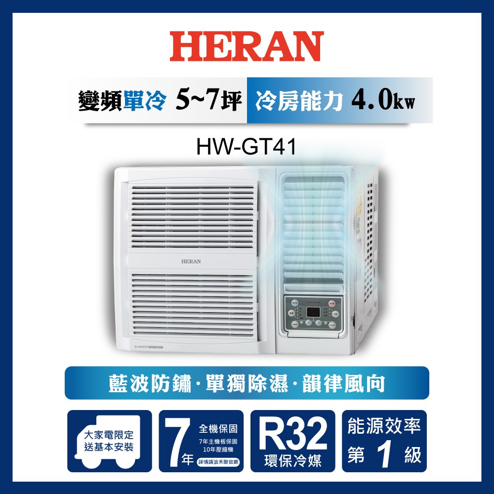 (含標準安裝)禾聯變頻窗型冷氣6坪HW-GT41