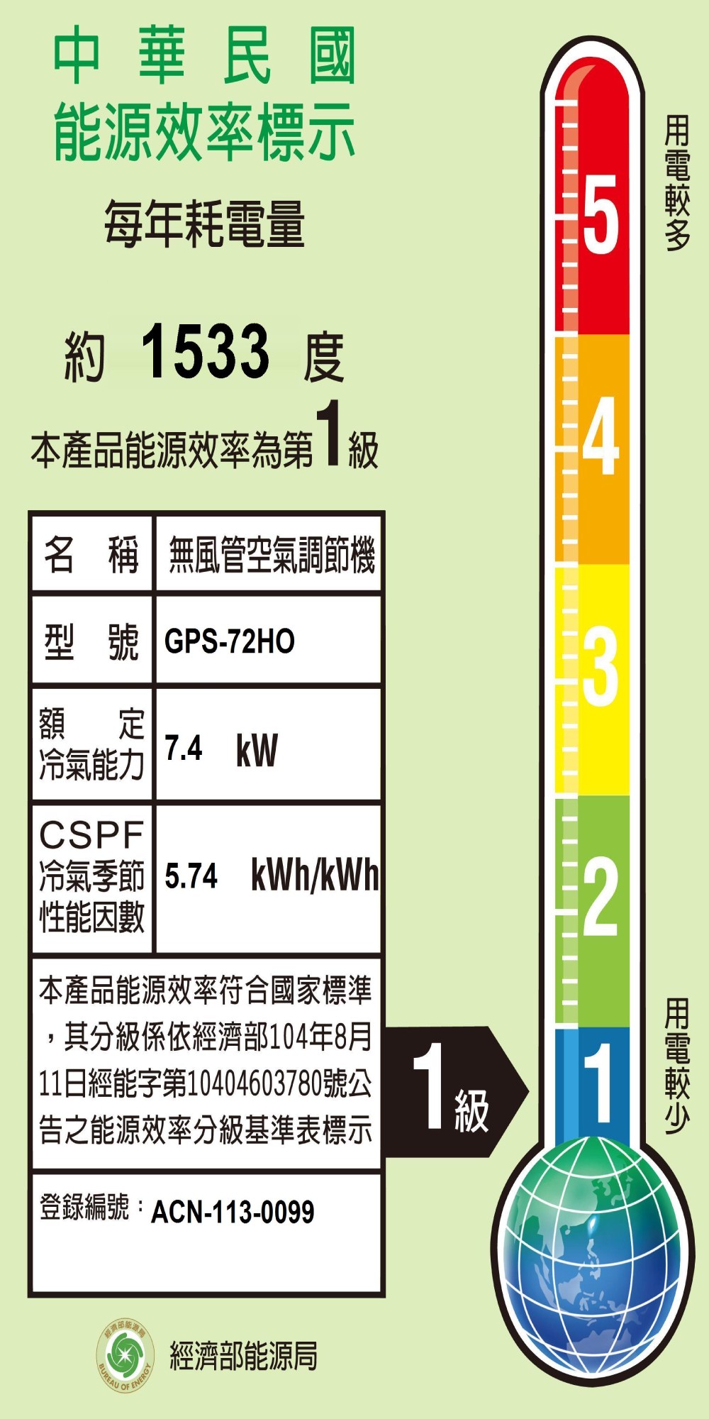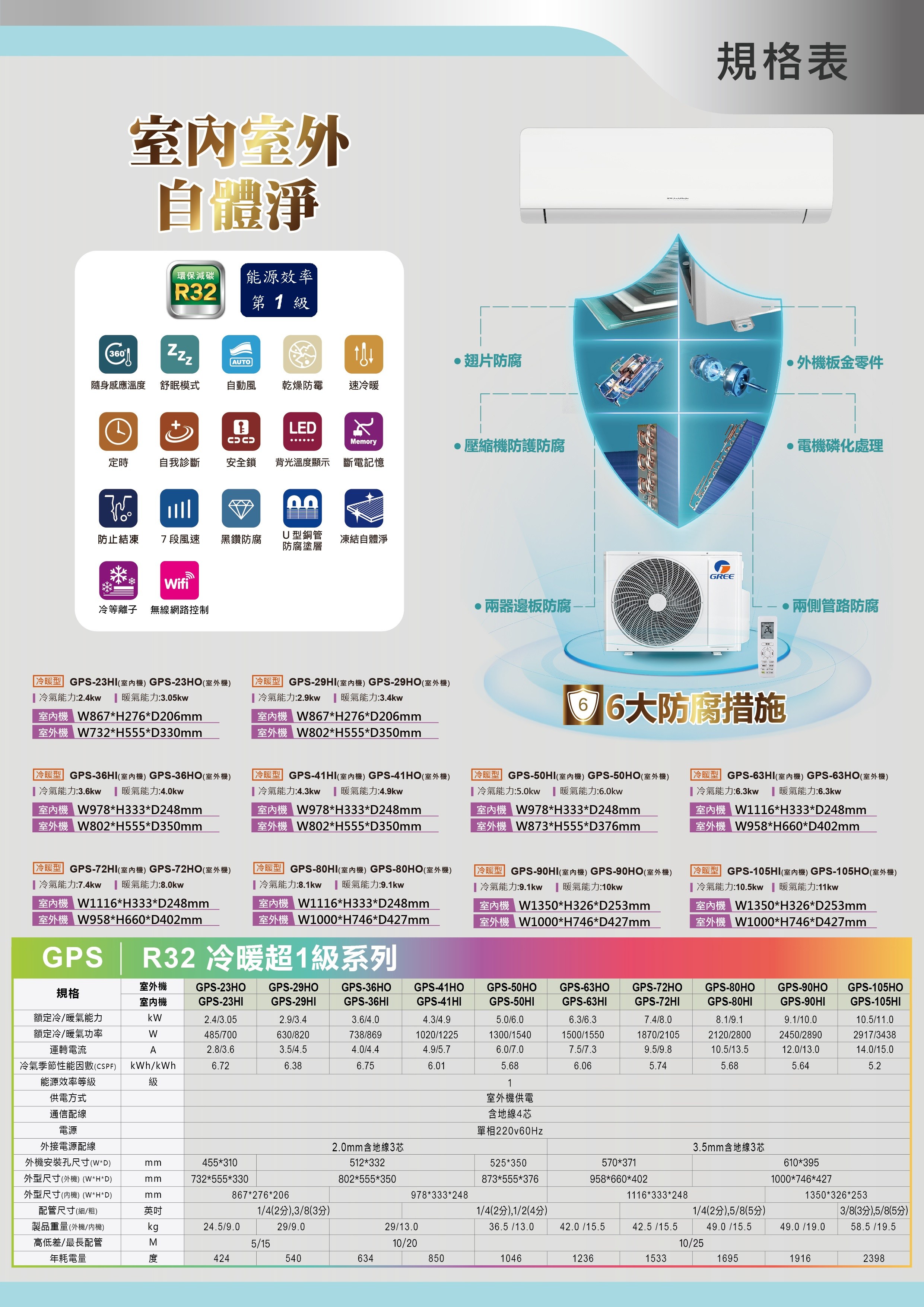 格力 R32超1級 1對1變頻冷暖分離式冷氣 GPS-72HI/HO