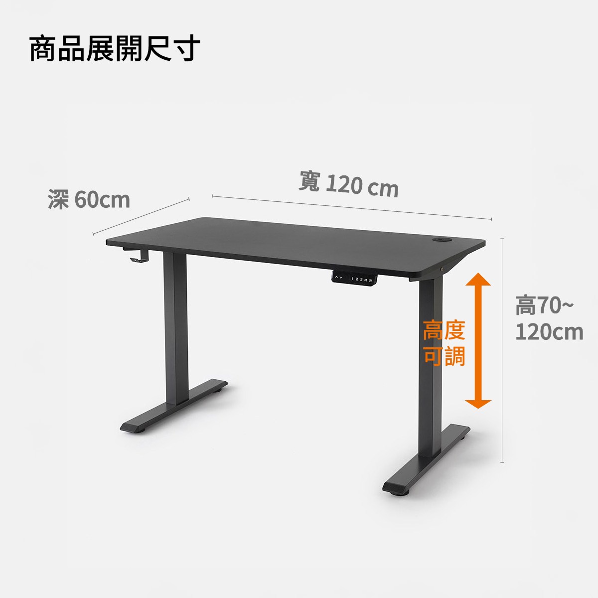伊登電動升降辦公桌 120cm 黑