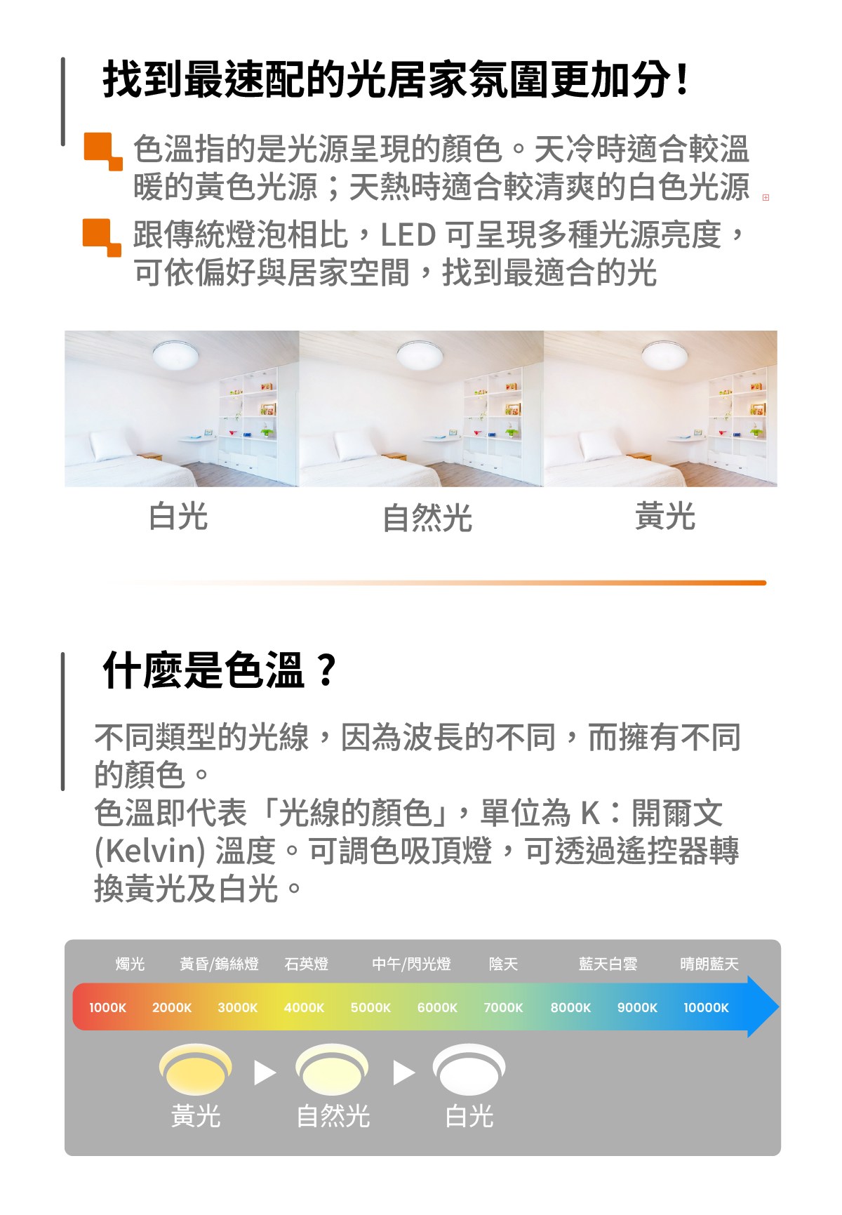 想打造溫馨舒適的居家光線氛圍,就從為不同空間挑選適合的燈具開始。我們提供多元功能與風格燈具,調光調色、遙控或聲控、IP防水係數等一應俱全,完美符合客廳、臥室、浴室、陽台等不同空間的照明需求。全系列商品皆通過CNS認證,讓全家人都能更便利安心!
