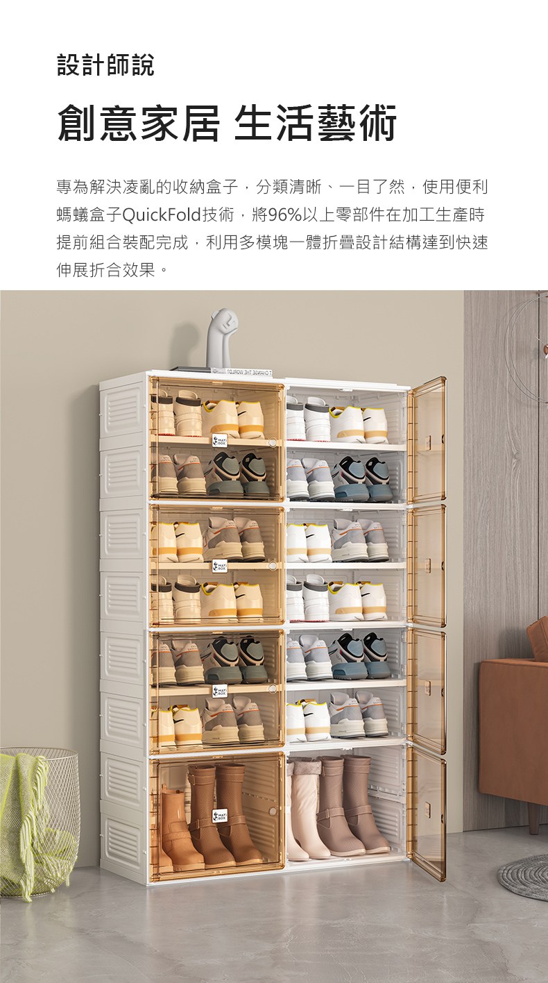ANT BOX 螞蟻盒子 透明變身鞋櫃 輕鬆收疊 一體成形 3分鐘快速組裝 淨白透明 1個