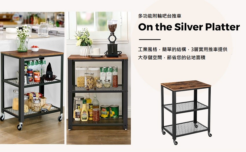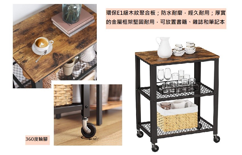 hoi! VASAGLE 工業風附輪吧台推車 鐵銹棕 LRC78X