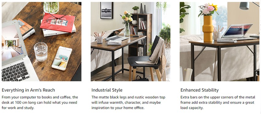 hoi! VASAGLE 工業風簡約型書桌/電腦桌1.2M-鐵鏽棕 LWD039B01