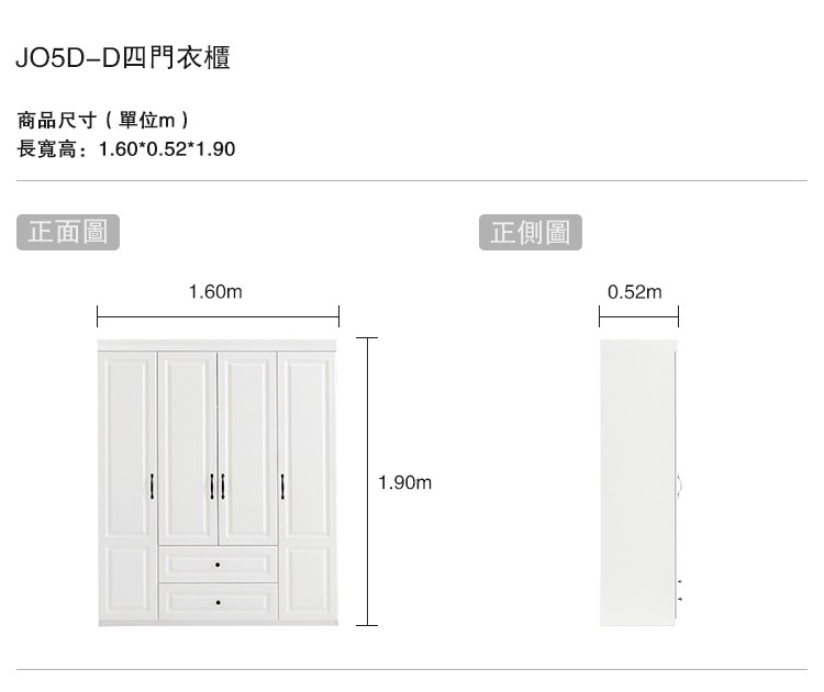 hoi! 林氏木業北歐簡約純白四門衣櫃 JO5D