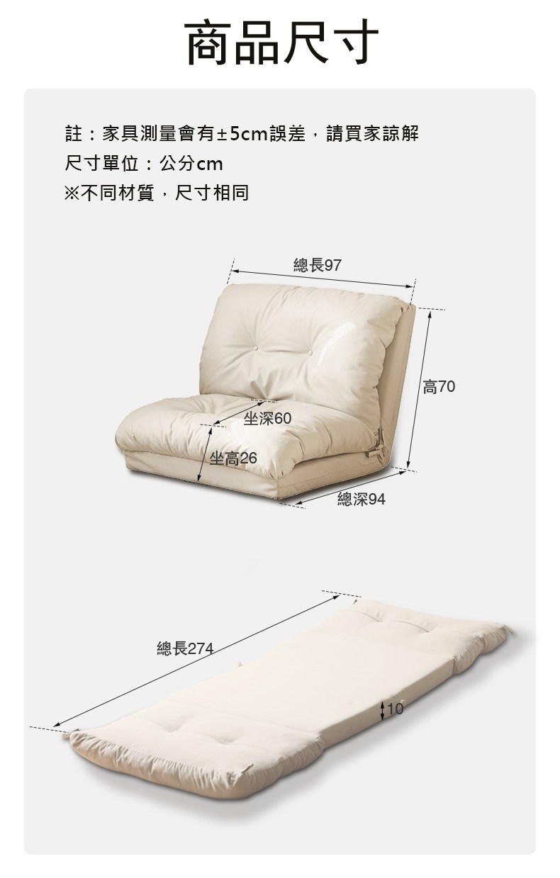 IDEA-威森三段調整沙發床(兩款可選)