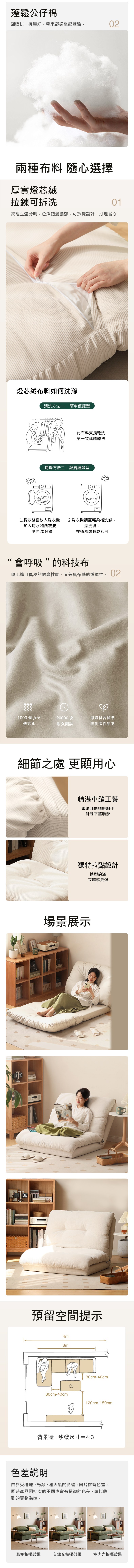 hoi! 源氏木語奶油風燈心絨懶人沙發床 S0433