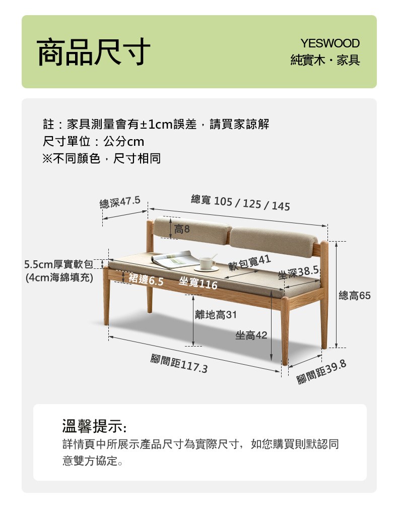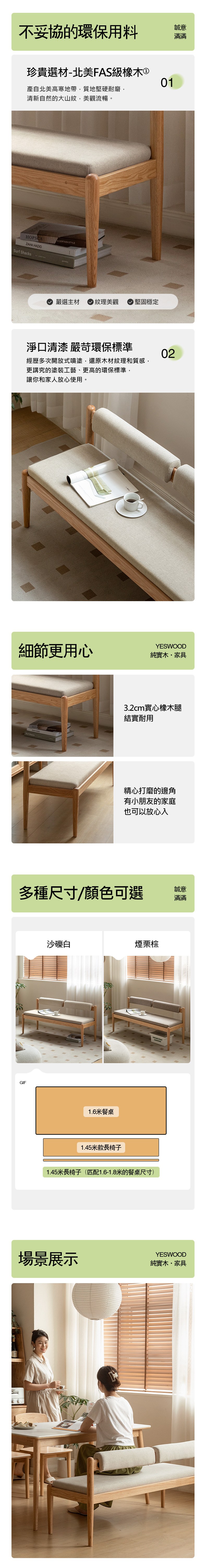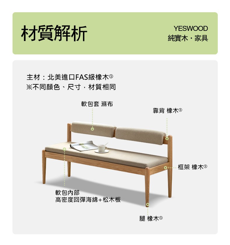 hoi! 源氏木語相伴橡木原木色背靠布面長凳1.25M Y83T78 煙栗棕