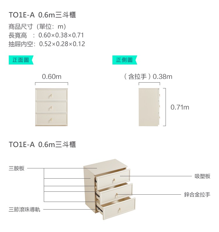 hoi! 林氏木業法式奶油風0.6M三斗櫃 TO1E
