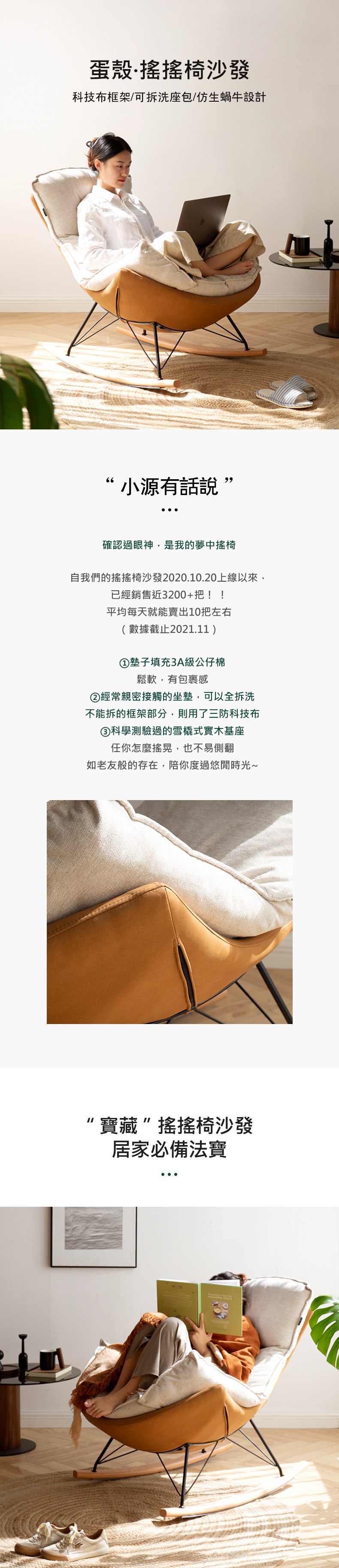 hoi! 源氏木語蛋殼搖椅單人沙發椅 S0525 古銅黃