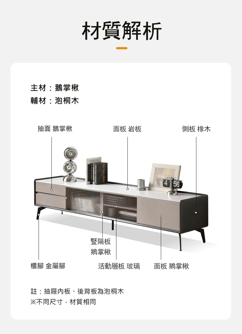 *注意:以下為情境示意圖,實際商品款式為萊可實木輕奢岩板電視櫃2M X167N01