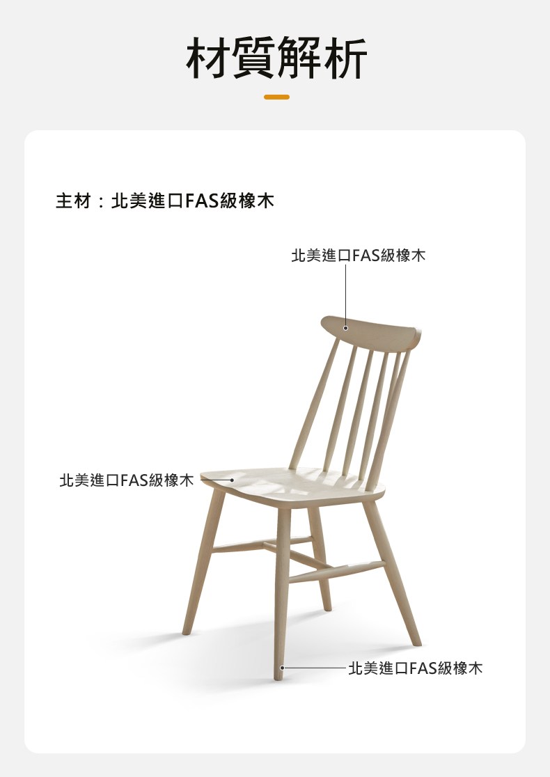 hoi! 源氏木語雅白奶油風橡木溫莎椅餐椅 Y220S01