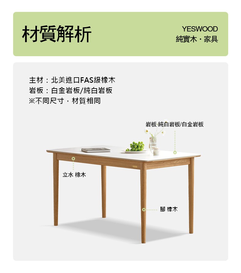 *注意:以下為情境示意圖,實際商品款式為雲岩橡木原木色岩板餐桌1.4M Y54R06