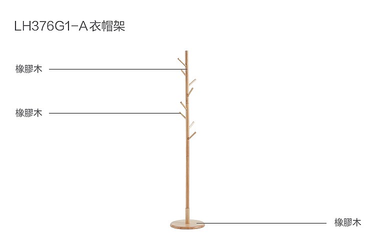 hoi! 林氏木業簡約實木圓底座衣帽架 LH376-原木色
