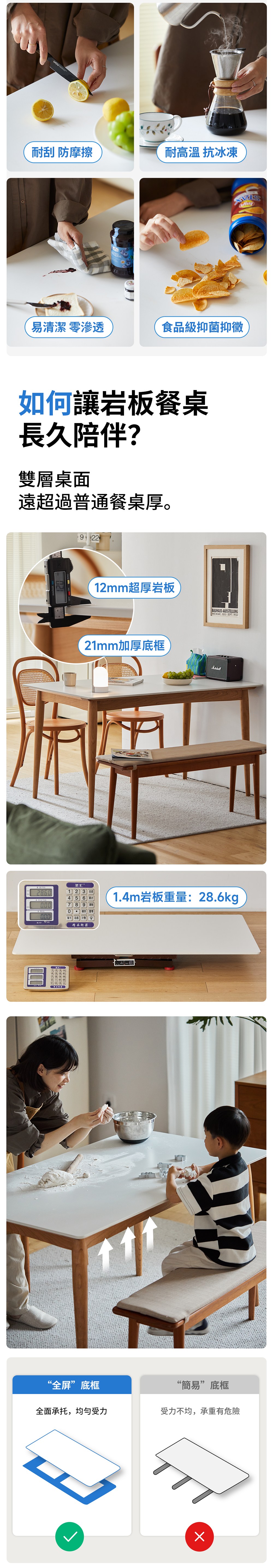 *注意:以下為情境示意圖,實際商品款式為格林櫻桃木岩板1.4M餐桌-白色