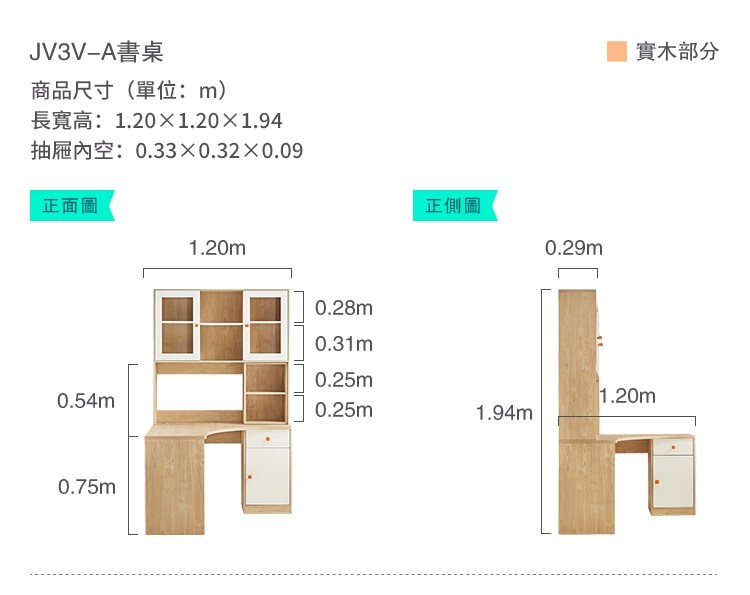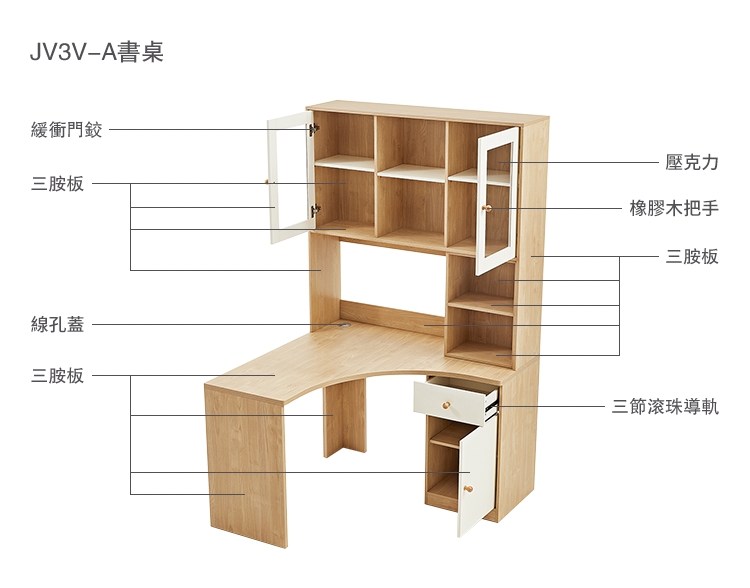 hoi! 林氏木業北歐簡約附書架轉角書桌 JV3V-原木+白色