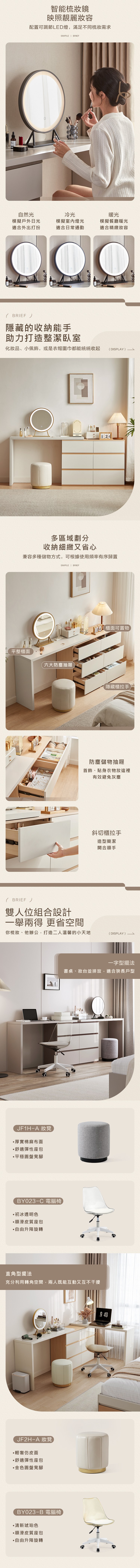 林氏木業北歐原木風抽屜櫃附鏡可伸縮化妝桌組 UE1C (附妝凳 JF1H) (H014378516)