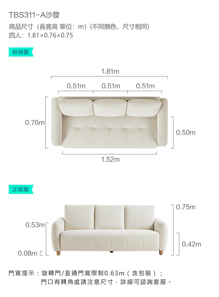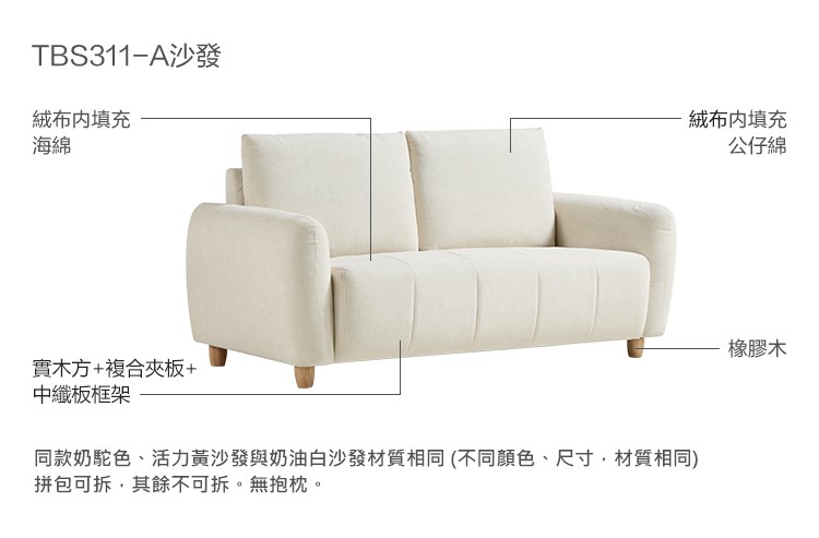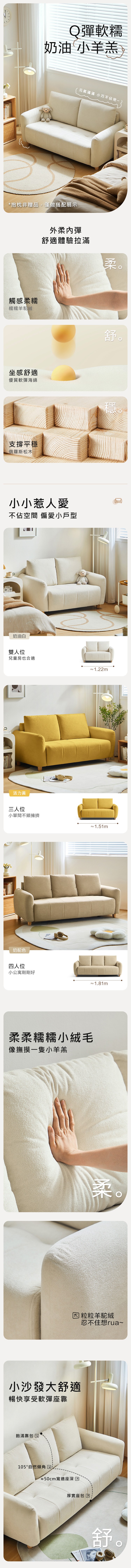 hoi! 林氏木業小羊羔四人小沙發 TBS311-奶駝色