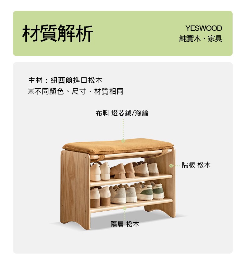 hoi! 源氏木語輕鬆實木燈心絨穿鞋椅0.88M Y00T57 薑黃