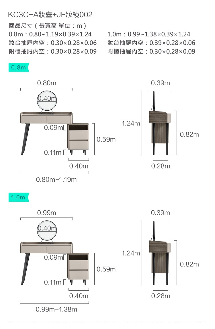 hoi! 林氏木業現代簡約灰木色0.8M可伸縮抽屜櫃化妝桌 KC3C