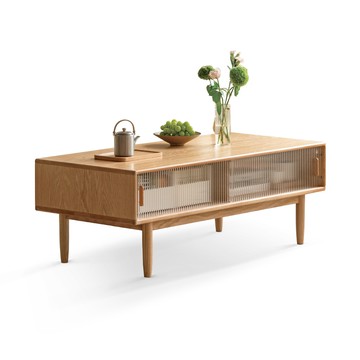 hoi! 源氏木語光岩橡木原木色玻璃移門茶几1.19M Y150J14