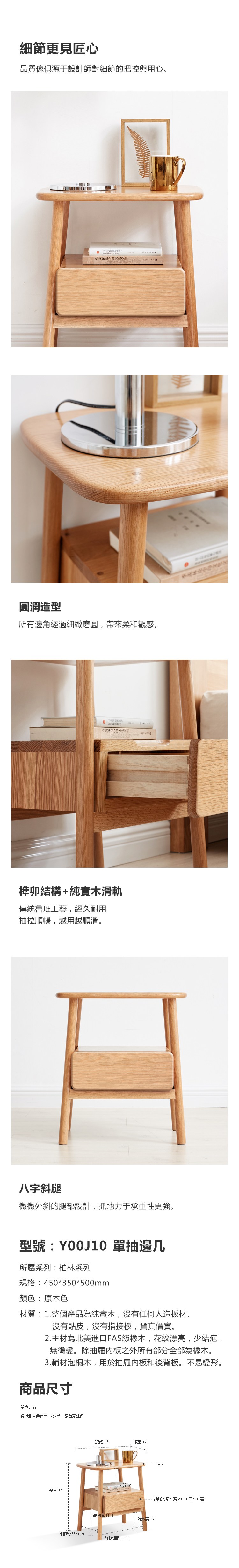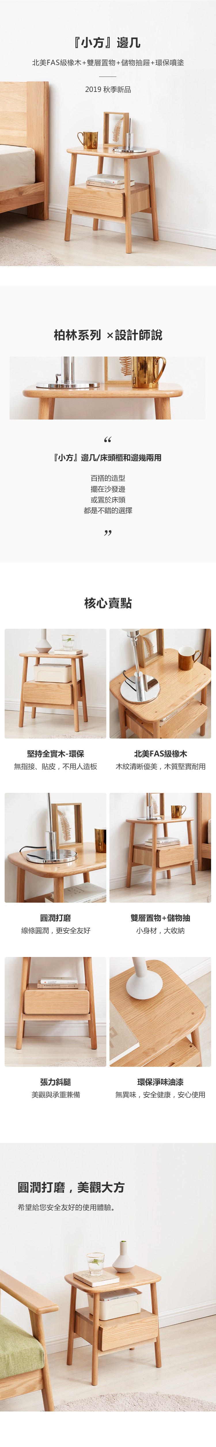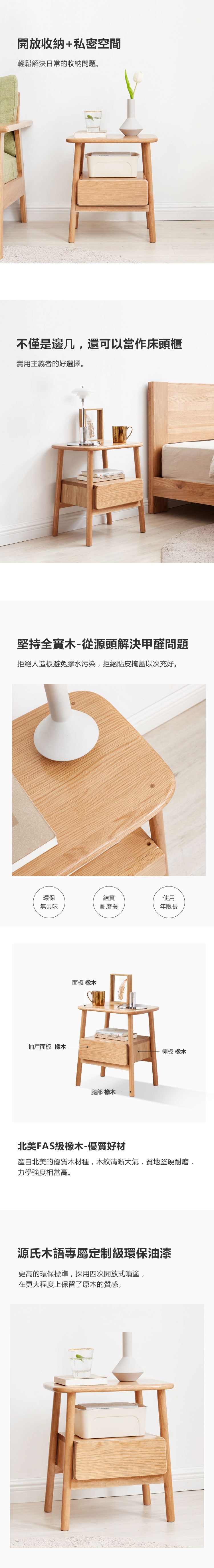 hoi! 源氏木語西雅圖橡木單抽實木邊几 Y00J10