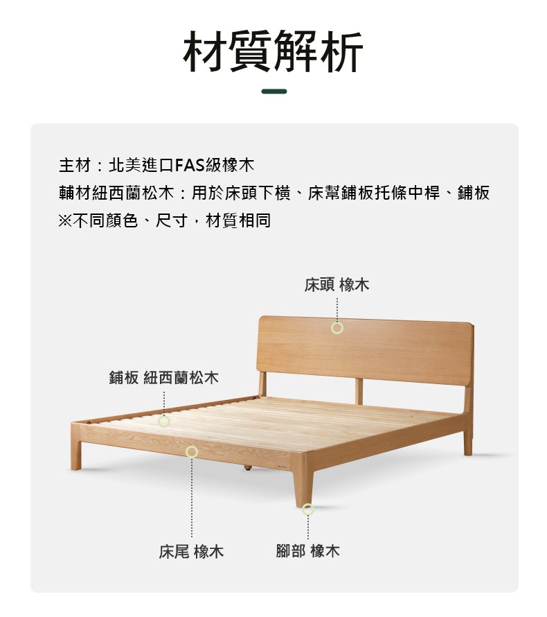 hoi! 源氏木語和素橡木原木色斜靠雙人加大180x190高背床架 Y00B84