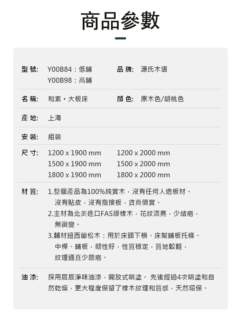 源氏木語和素橡木原木色斜靠雙人150x190高背床架 Y00B84 (H014384203)