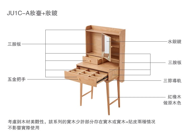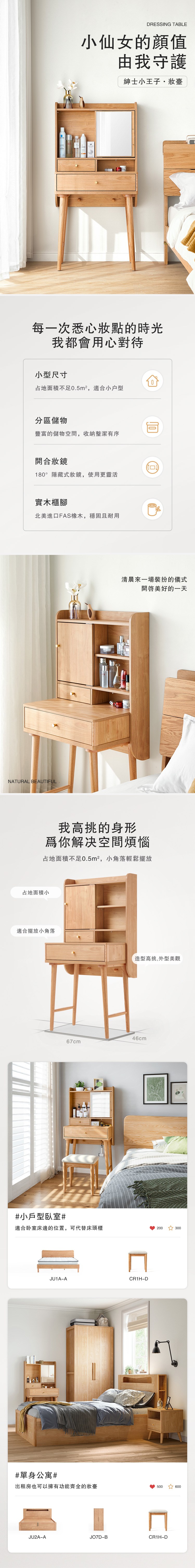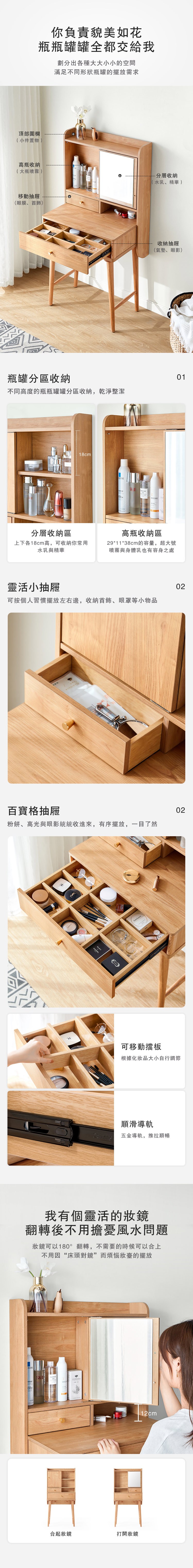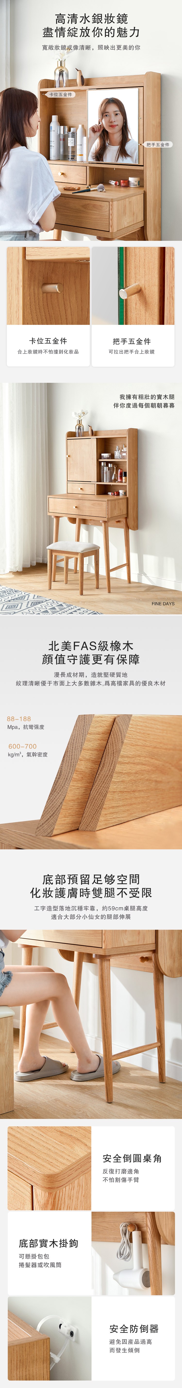 林氏木業北歐原木風抽屜櫃附鏡可伸縮化妝桌組 UE1C (附妝凳 JF1H) (H014378516)