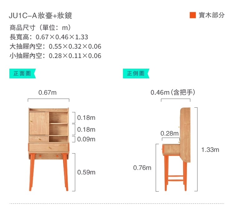 【HappyLife】實木迷你化妝桌 40公分 Y11855原木