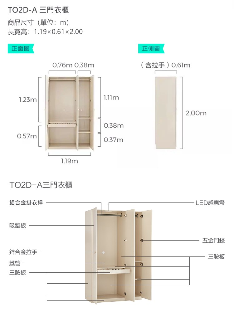 【TZUMii】雅緻三門二抽衣櫥/衣櫃/衣物收納櫃/收納櫃 (雙色可選)