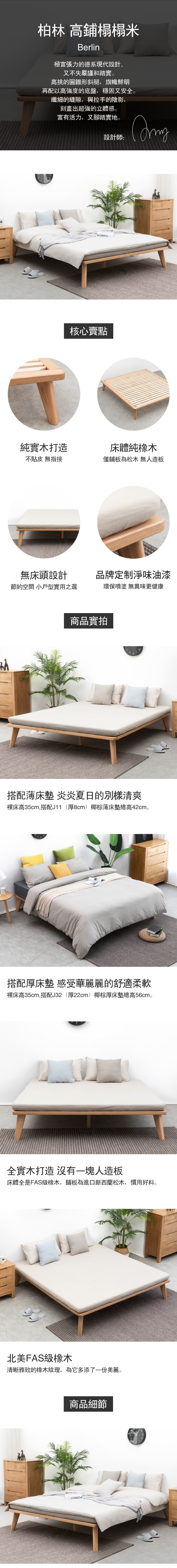 hoi! 源氏木語柏林橡木無床頭雙人150x190高鋪床架 B3807