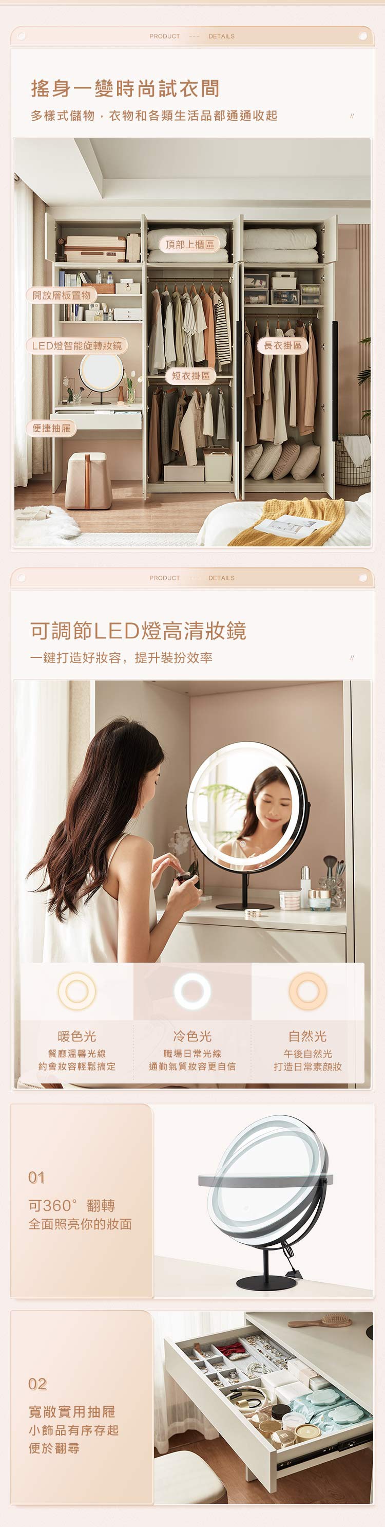 林氏木業北歐簡約純白金色把手五門衣櫃JO12D(附掛衣、化妝邊櫃、頂櫃及妝凳)-(H014369229)