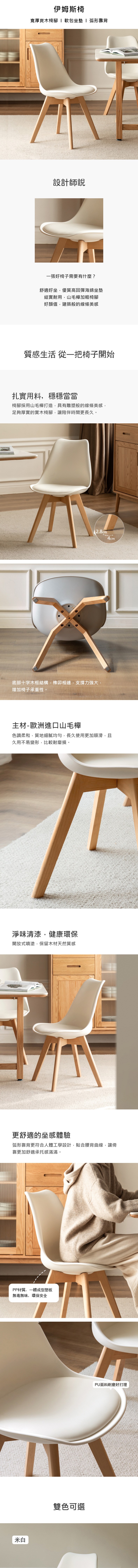 源氏木語伊姆斯PU坐面山毛櫸實木餐椅 S0399 米白