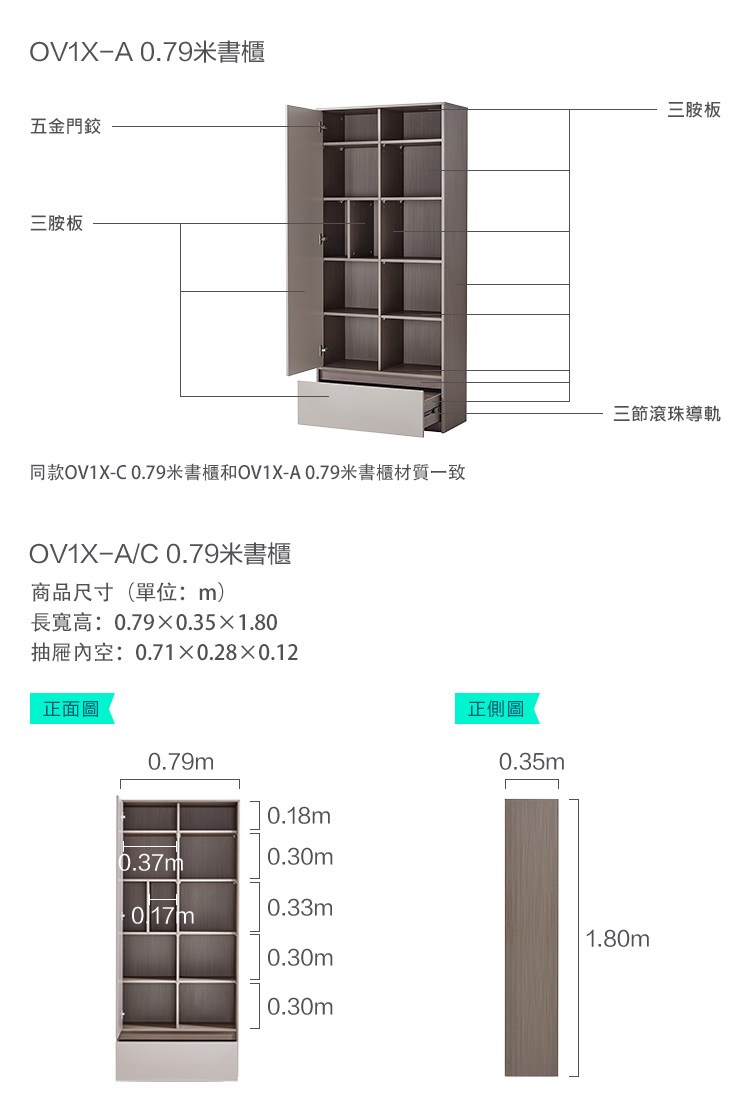 *注意:以下為情境示意圖,實際商品款式為簡約雙色多功能0.79M附抽屜書櫃 OV1X-原木+灰