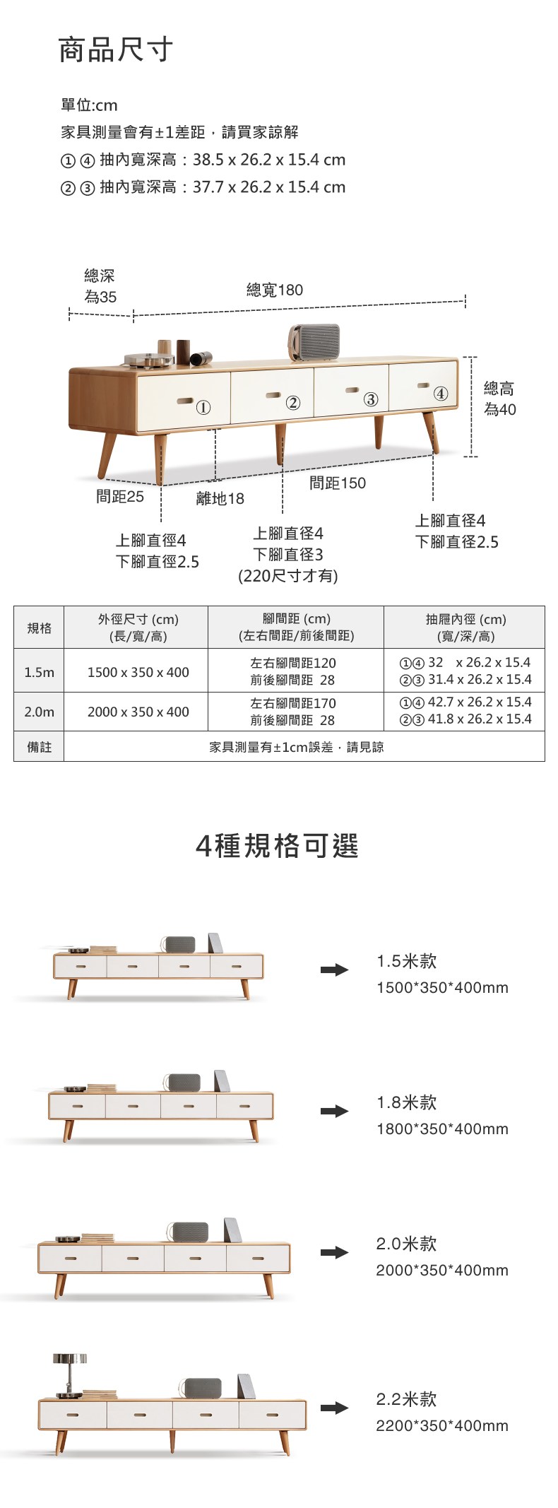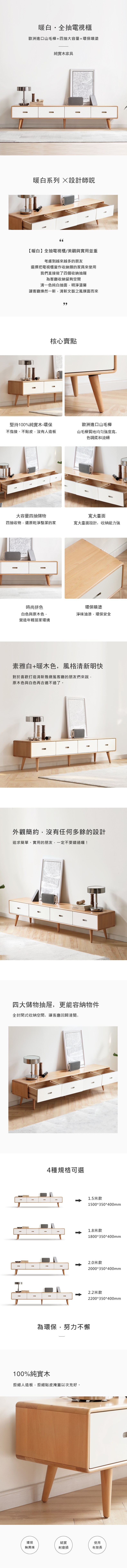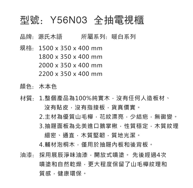 hoi! 源氏木語暖白實木四抽電視櫃1.8M Y56N03