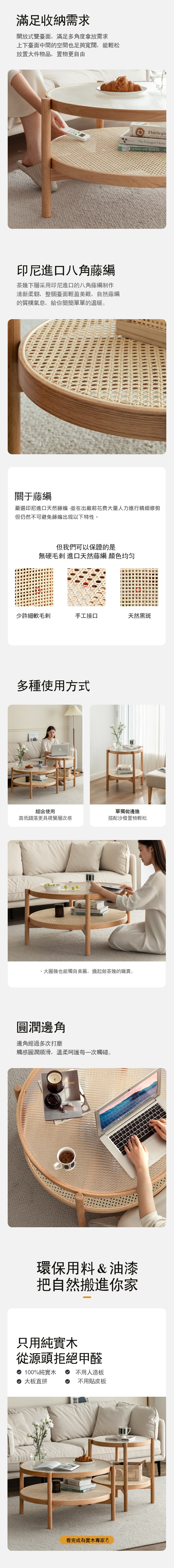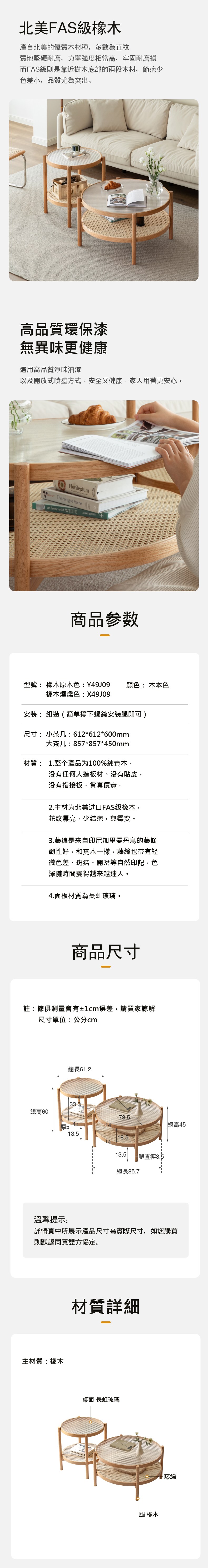 hoi! 源氏木語覓藤玻璃藤編橡木實木0.85M圓形茶几 Y49J09