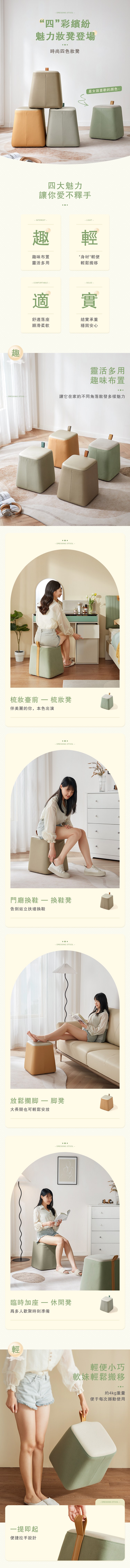 *注意:以下為情境示意圖,實際商品款式為繽紛時尚雙色化妝凳 AI1H-杏色+果綠