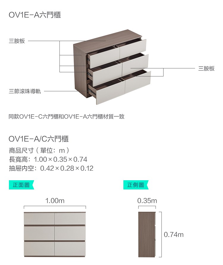 *注意:以下為情境示意圖,實際商品款式為簡約雙色1M六斗櫃 OV1E-原木+灰