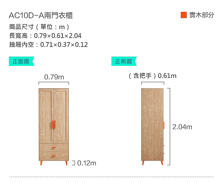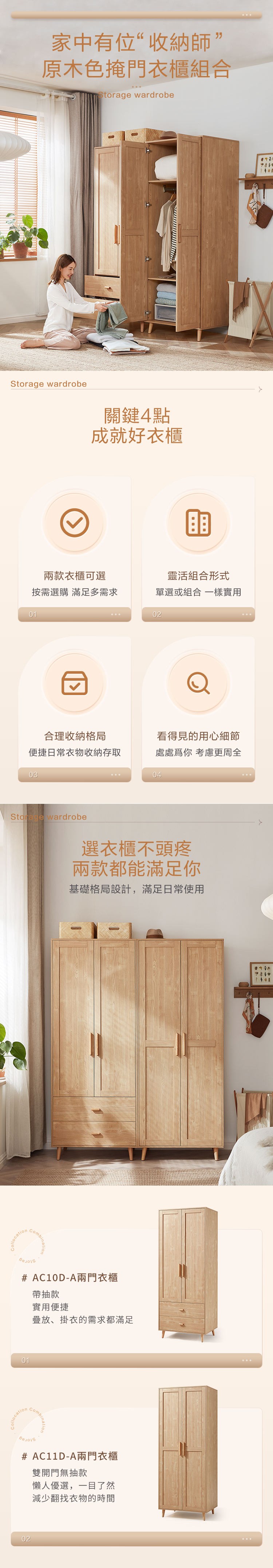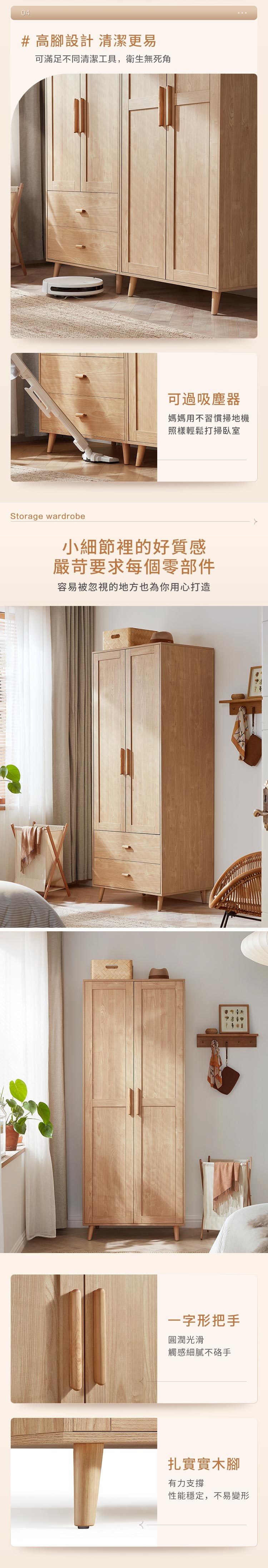 hoi! 林氏木業北歐簡約原木色高腳雙門雙抽衣櫃 AC10D