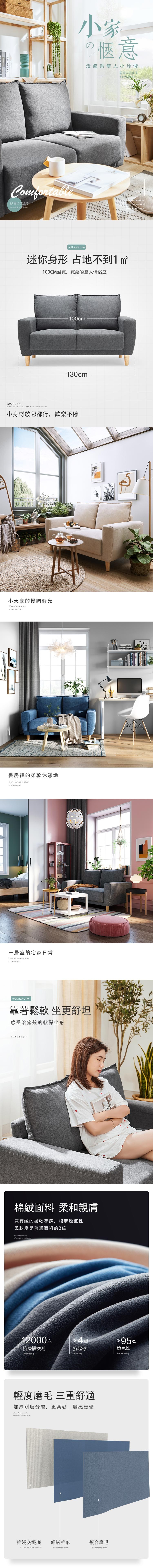 伊登貓抓布沙發 兩人 亞麻灰