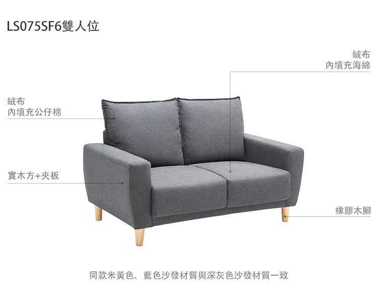 hoi! 林氏木業北歐小戶型雙人布沙發 LS075-藍色