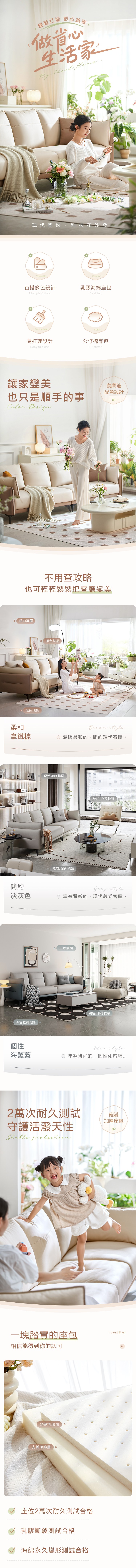 hoi! 林氏木業溫柔拼色皮感科技布小四人沙發 BS103-拿鐵棕