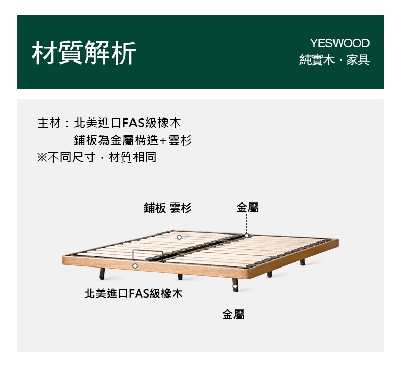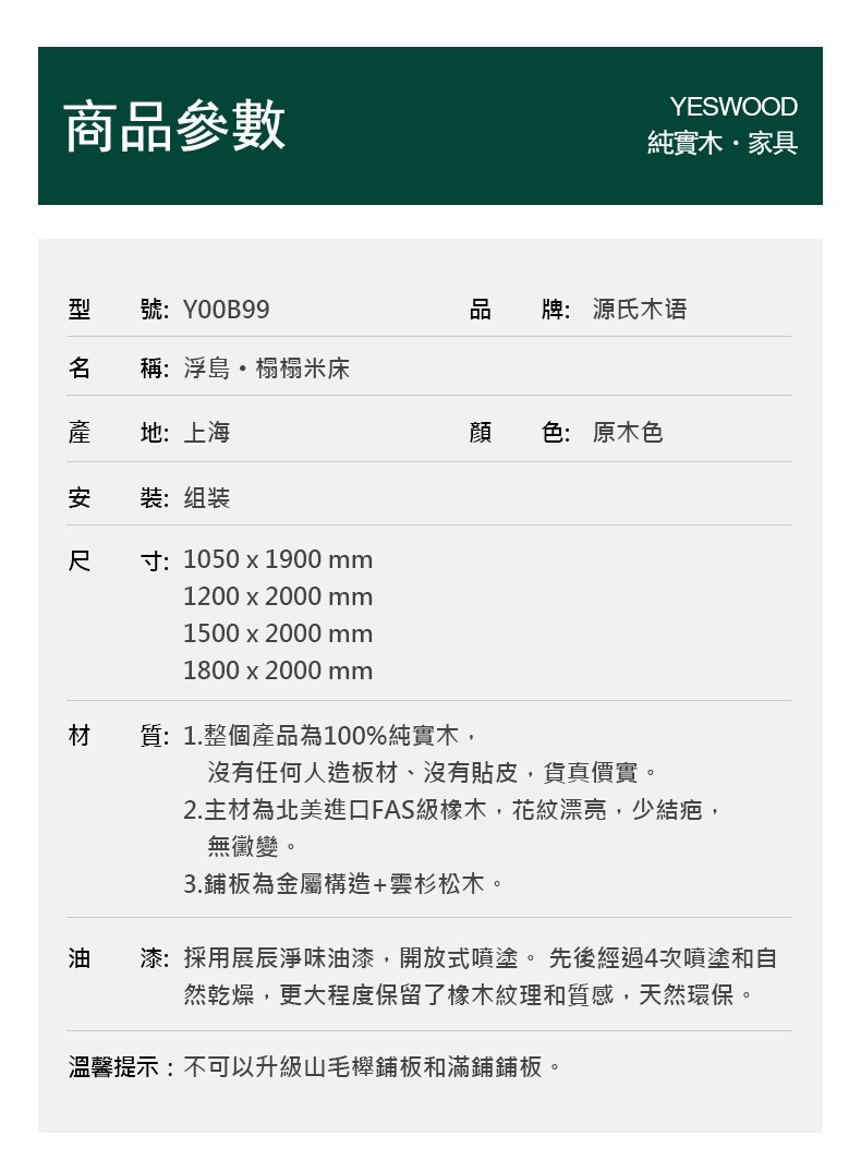 源氏木語嵐嶼白蠟木實木低鋪雙人床架150X200Y154B04-(H014413729)