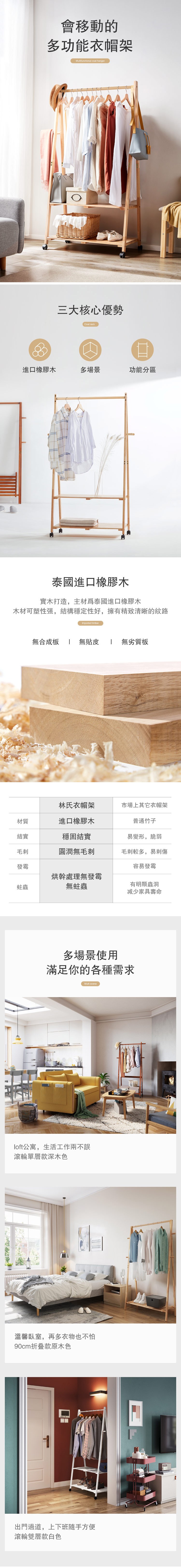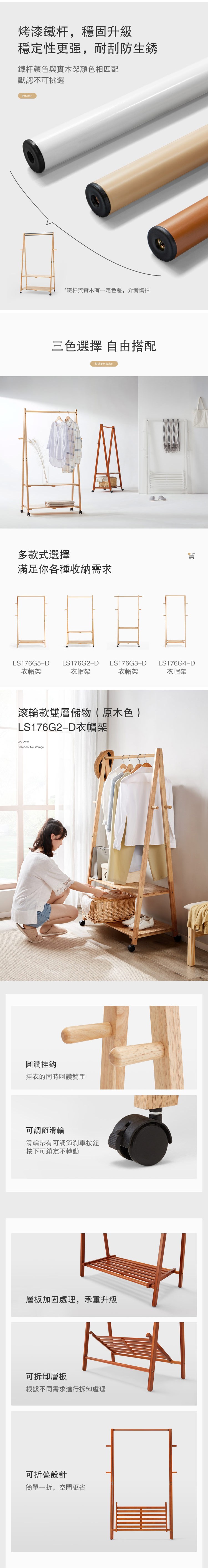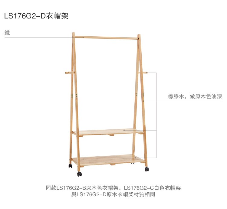 *注意:以下為情境示意圖,實際商品款式為林氏木業北歐經典實木雙層滾輪衣帽架 LS176-原木色