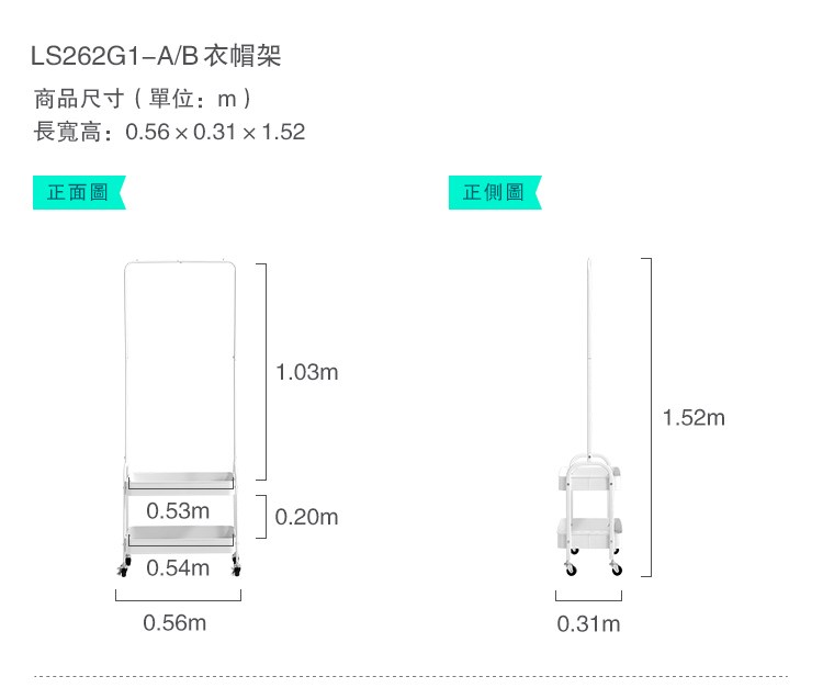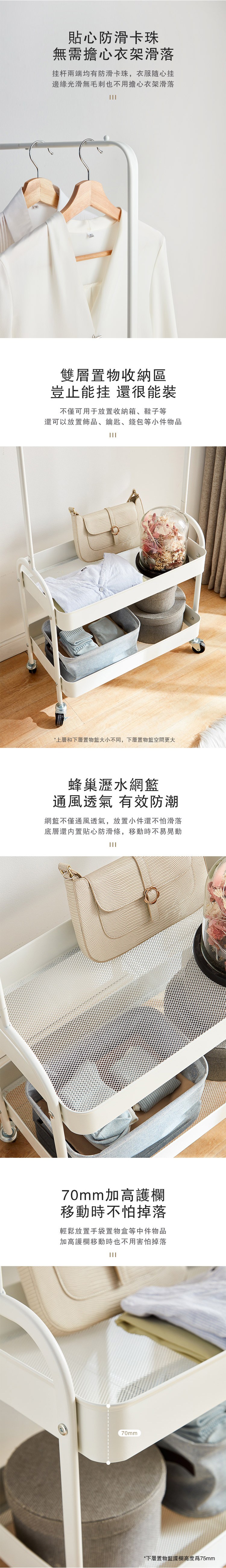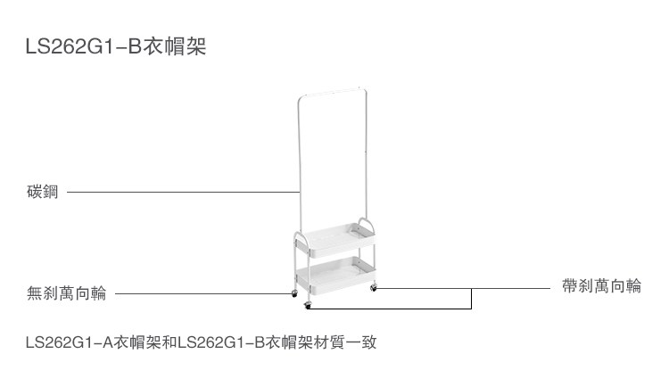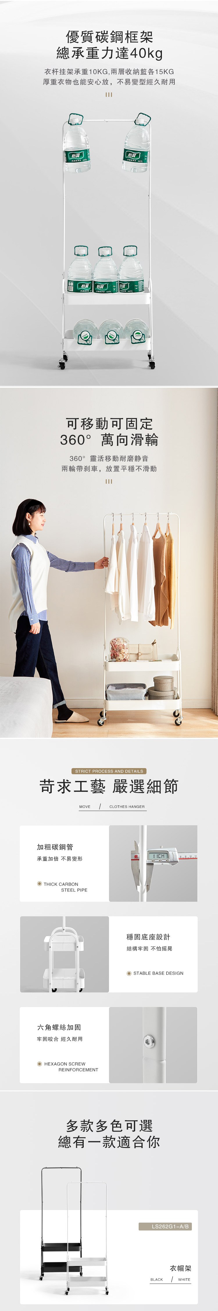 Life 日式簡約 多功能雙層落地衣帽架/掛衣架/置物架 鋼架材質 帶煞車滾輪設計 145 x 60 x 30cm 鋼琴白