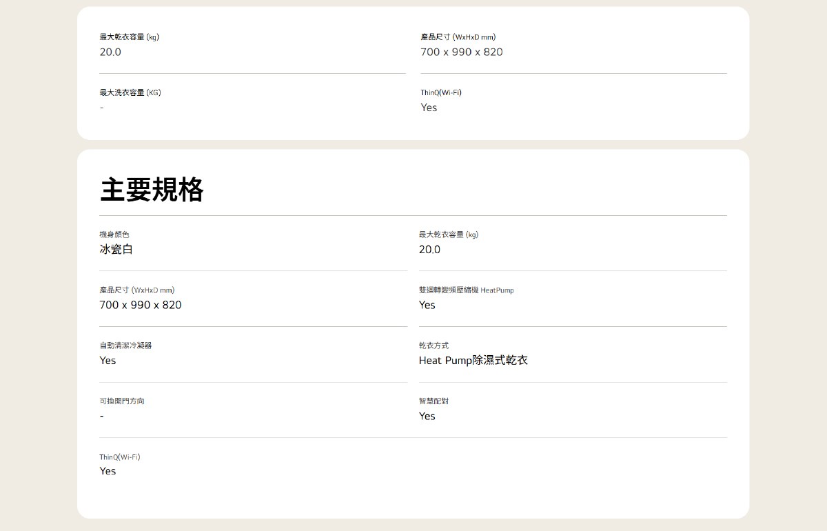 LG WR-20DW 免曬衣乾衣機20kg